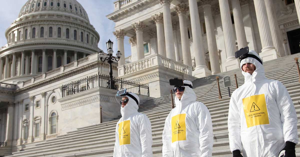 Three activists with cameras mounted to their heads scanned the faces of more than 13,000 people in Washington, D.C., on Thursday as part of a protest organized by digital rights group Fight for the Future.
