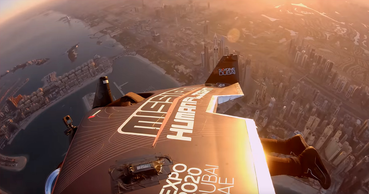 “Controlled from the ground by the human body, the equipment enables Jetman Dubai to reach speeds of 400kmh, as well as hovering, changing direction and performing loops,” reads the caption.