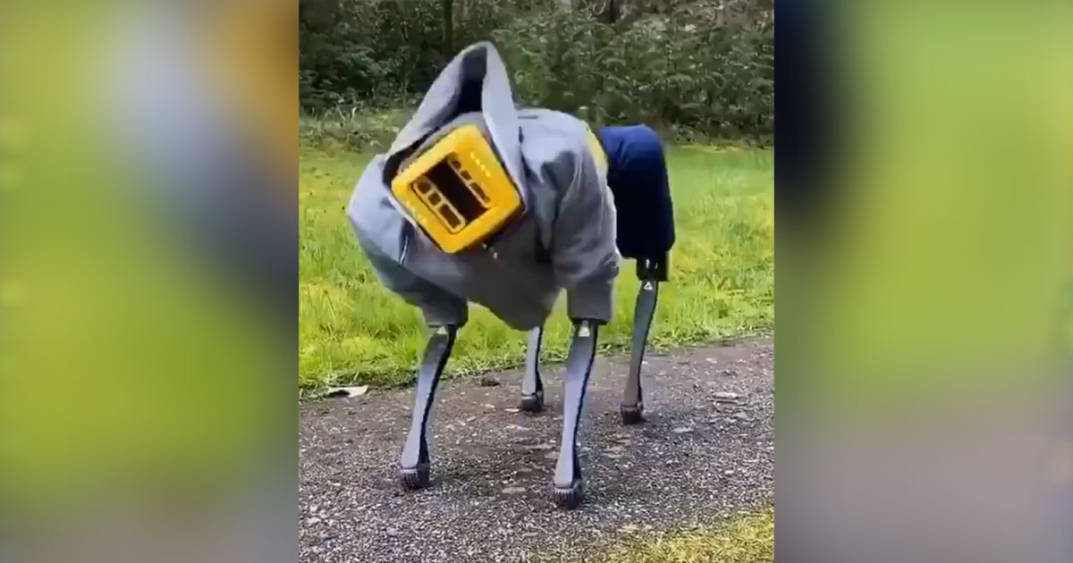 A video created by The Aigency, “a talent management resource for robotic personalities,” shows a Boston Dynamics Spot Mini robodog perform a spirited dance routine while rocking a pair of basketball shorts and oversized hoodie.
