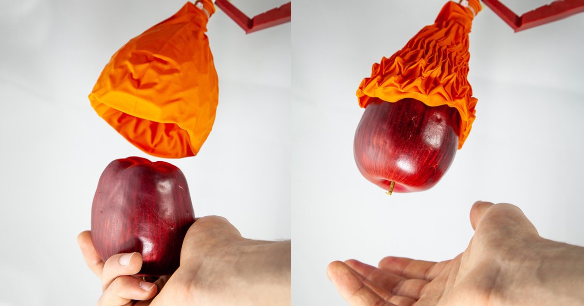 The team drew inspiration for its hand from the origami magic ball. Rather than using some sort of finger-like grippers, their cone-shaped robot hand envelopes an object and then collapses around it, much like a Venus flytrap captures its prey.