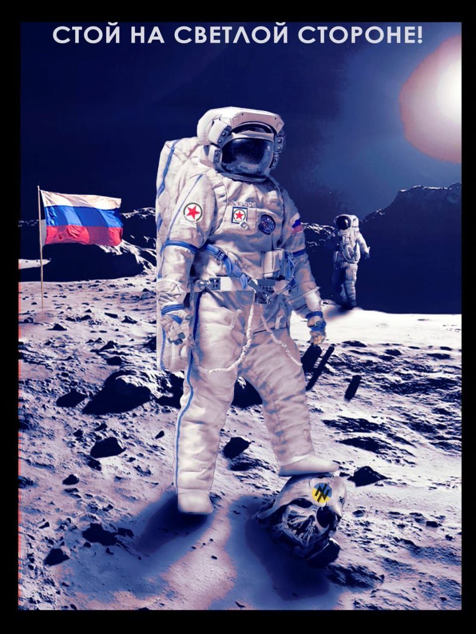 “Stand on the light side,” the meme, which features a person in a spacesuit standing on the Moon in front of a Russian flag, reads. Under the fictional cosmonaut’s boot is a disembodied, Darth Vader-like helmet with regalia similar to that of the far-right Azov Battalion militia, a controversial unit of the National Guard of Ukraine.
