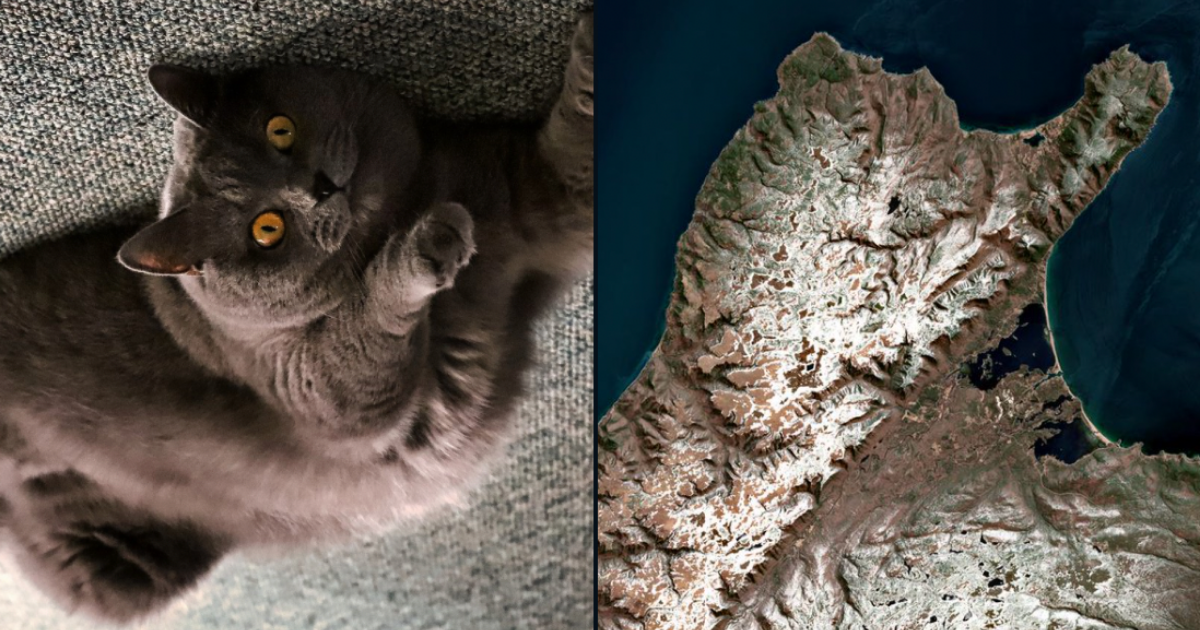 The original photo was taken in April 2021 by the European Space Agency’s Copernicus Sentinel-2 satellite. It was processed by Lost Art Cartography artist Marcel Morin. At least one photography fan was so struck by the image they recreated a cute kitty of their own, pictured below.