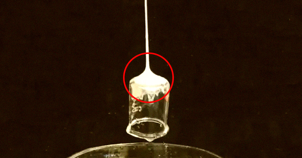 While it won’t allow an adult person to swing from skyscraper to skyscraper any time soon, the results speak for themselves. Footage of the team’s experiments shows strands of the material being dripped onto a number of objects from several inches above, forming a solid connection in a matter of seconds and allowing the object to be carried away.