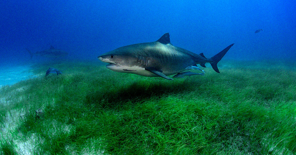 Researchers attached cameras and trackers to the dorsal fins of tiger sharks to study the seabed.