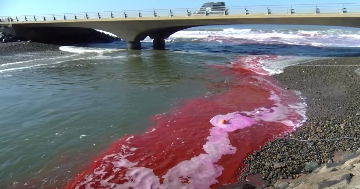 An amusing one, since in the right lighting you might mistake it for a certain Biblical event, or perhaps an especially grizzly shark attack. But it’s also the most sensible one, easily distinguished from the ocean’s greenish blue tinge.
