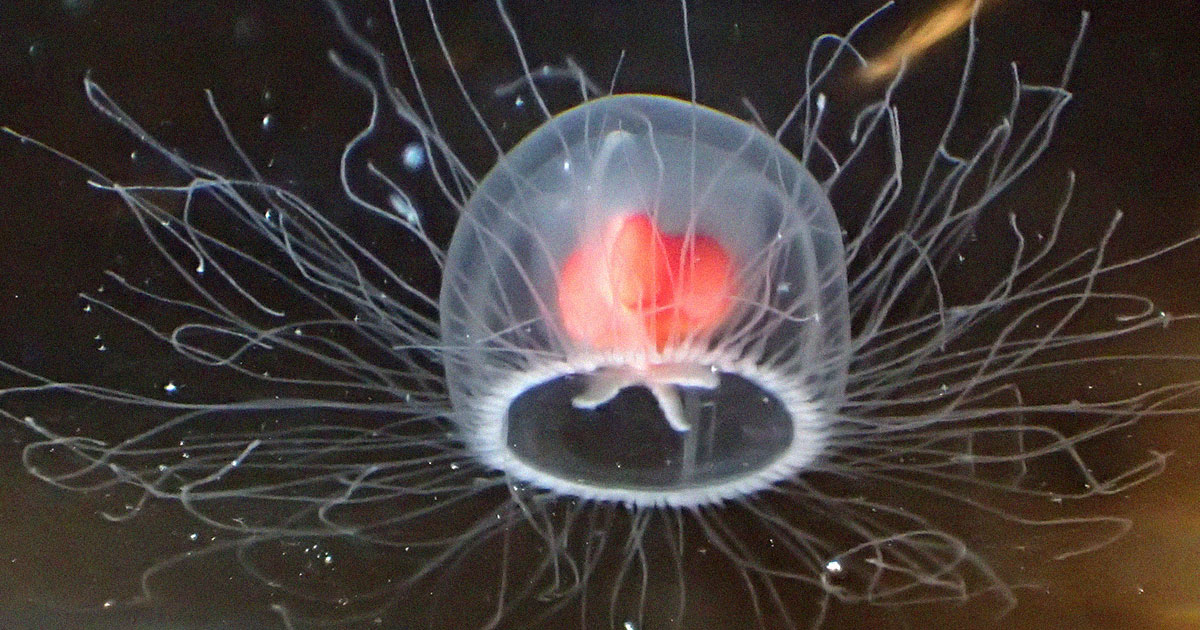 DNA repair and telomeres are particularly important to the critter. When times are tough or the jelly is starving, it re-absorbs its own tentacles and sinks to the seafloor, where it becomes a baby polyp once more and spouts off more jellies that will eventually mature into medusae.