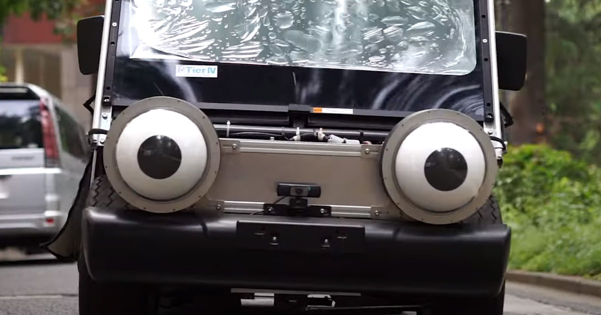 One idea, from researchers in Japan: giant, animatronic googly eyes attached to the front of autonomous golf carts — and the results speak for themselves.
