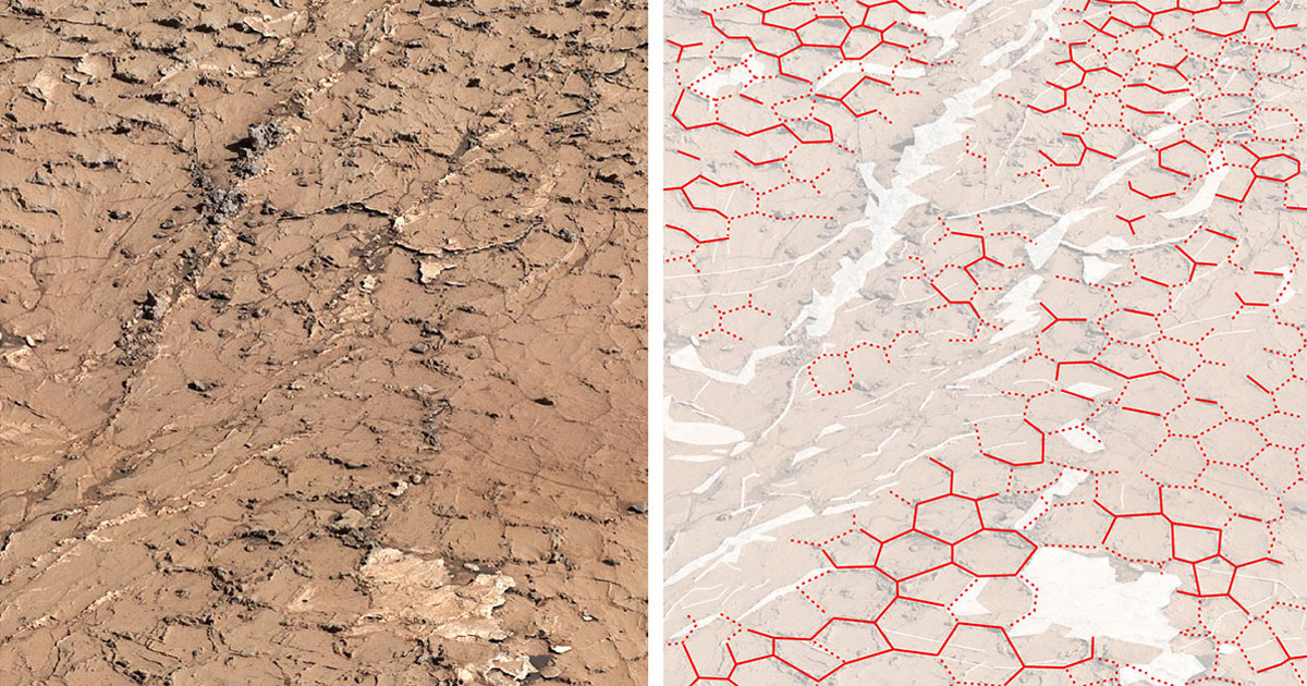 As the Martian mud in the area dries out, it shrinks and cracks, forming T-shaped junctions, something Curiosity had already discovered. But now scientists are saying that prolonged — and more importantly recurring — exposure to water likely caused these cracks to turn into Y-shaped junctions, forming hexagonal patterns.