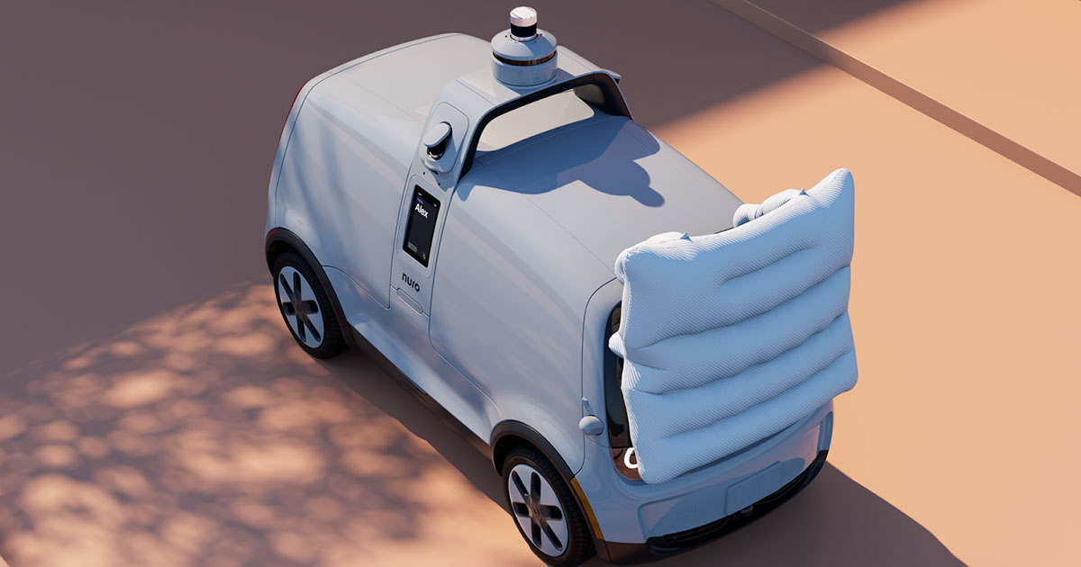 Autonomous driving startup Nuro has come up with a delivery vehicle that has a giant external-facing airbag in case it ever hits a cyclist or pedestrian — a rather unusual approach to ensuring humans and delivery robots can coexist peacefully on public streets and walkways.