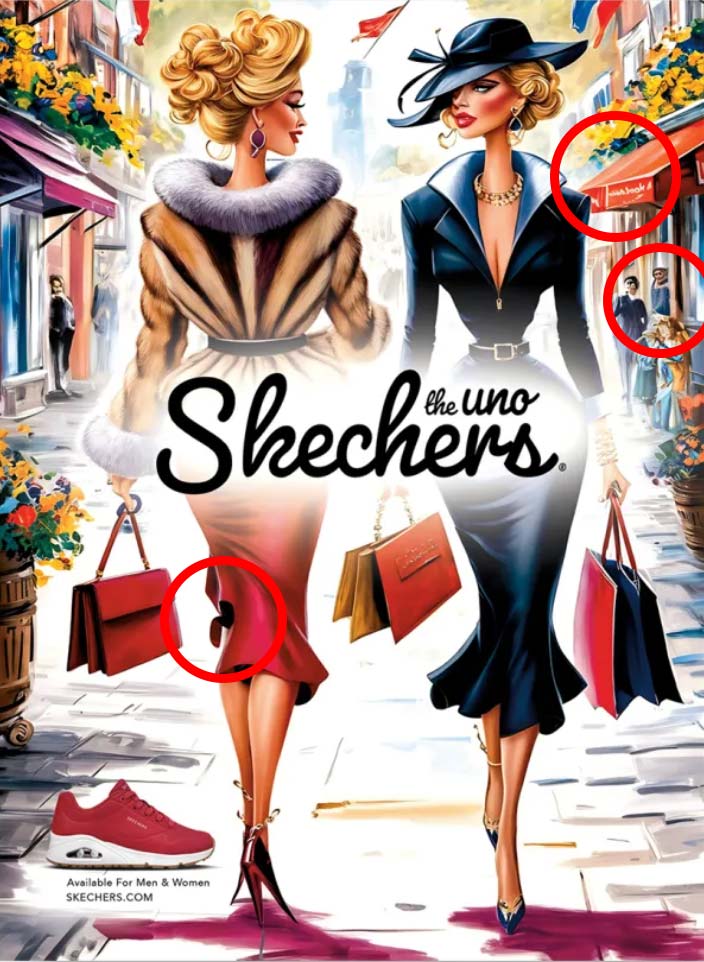 Footwear brand Skechers has been accused of lazily using generative AI for a full-page ad that appeared in the December issue of Vogue.