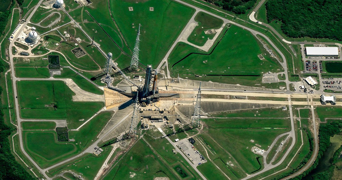 At least, that seems to be the case for NASA’s Moon-bound Space Launch System (SLS) megarocket, as it moved to the launch pad at Kennedy Space Center last week to prepare for testing. As spotted by Space.com, a satellite snapped images of the SLS all the way from orbit, illustrating just how gargantuan it really is.