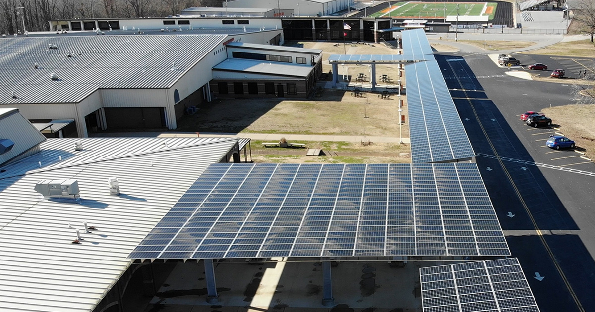 But then the school district, which included a high school and five other education centers, turned an unused field into a solar energy farm back in 2017. It also covered the front of the high school in 1,500 panels.