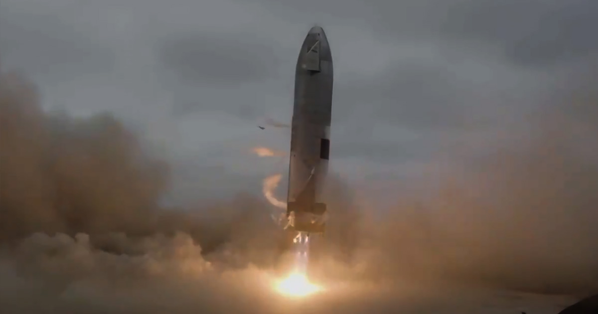 The video shows the prototype’s three Raptor engines shifting in a dance-like maneuver to ensure the rocket is upright to make a vertical landing. The maneuver has proven difficult as previous iterations of the rocket have made hard landings, causing them to blow up.