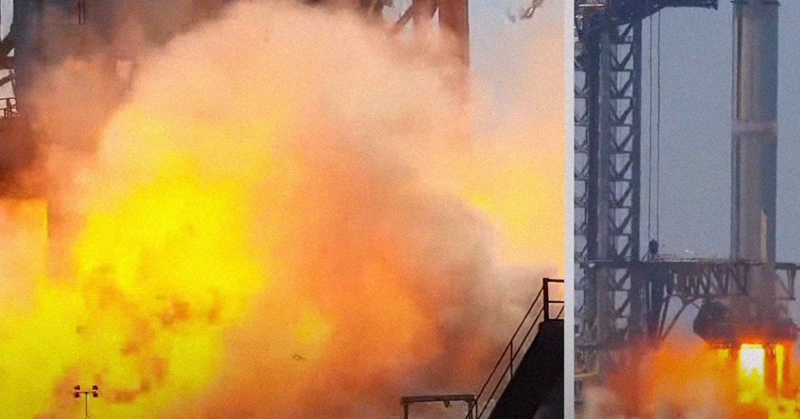 A livestream captured by NASASpaceFlight shows the behemoth structure light up in a massive ball of fire and send small pieces of debris flying, surprising onlookers. It’s unclear to what extent the Booster or launch tower were damaged during the explosion.