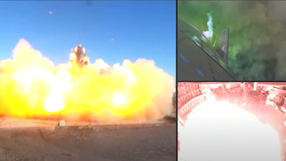 Most of the flight appeared to be successful — but the towering prototype appeared to come down hard, exploding in a gigantic fireball at the moment it impacted the ground.