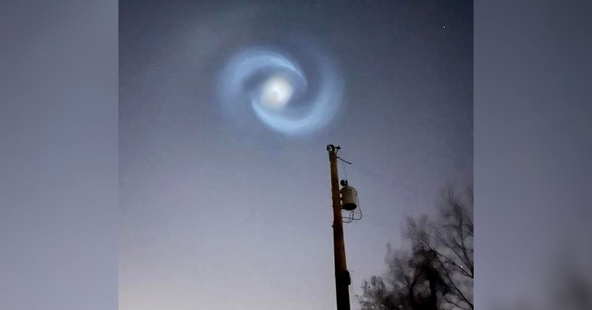 According to Mike Collier, the chief meteorologist for Tulsa’s KJRH, the unique spiral pattern that appeared around the rocket was likely caused by the rocket’s second stage fuel release mechanism.