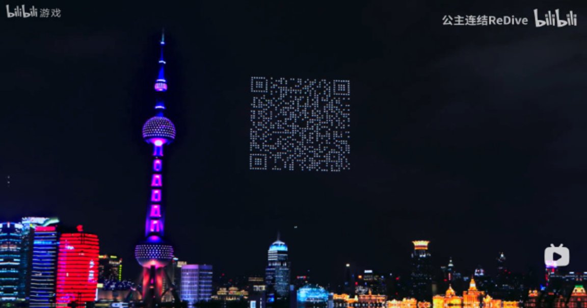 1,500 drones flew over Shanghai to celebrate the first anniversary of the Chinese release of the Japanese video game Princess Connect! Re:Dive, according to The South China Morning Post. Along with the QR code, the drones formed the image of several characters from the game.