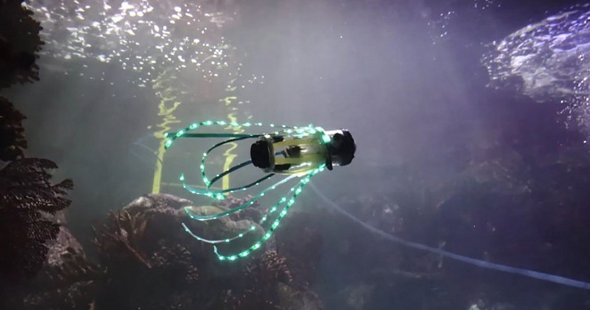 The robot carries its own power source and is made out of a soft acrylic polymer and a few rigid, 3D-printed parts. It can also be outfitted with sensors and a camera for exploring underwater worlds. The intent of soft robotics is to ensure that underwater life is protected from bumps and scrapes.