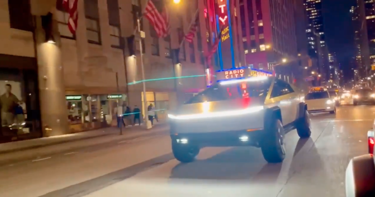 The electric carmaker tweeted a video of the Cybertruck driving by Radio City Music Hall on Saturday. The clip shows the electric pickup can be seen with glaring headlights and top light that’s sure to irritate anyone driving in front of the vehicle.