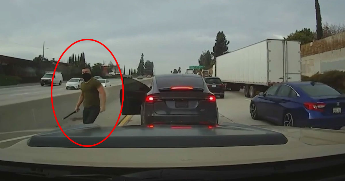 A masked Tesla driver armed — for some reason — with a pipe was caught on video attacking someone else’s car on a freeway in Los Angeles. Worse yet, he’s apparently been spotted menacing others around town.