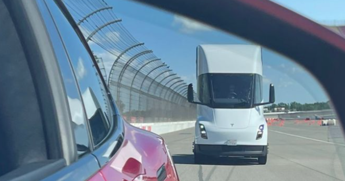 The Semi wasn’t pulling a trailer or cargo, but it was joined by the equally elusive Cybertruck.