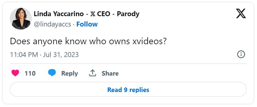 Amid the X launch, Yaccarino, who formerly went by @lindayaccs on the social media site, changed her handle to @lindayaX. Clever! But in the shuffle, it seems that no one at the company thought it might be a good idea to make her former username unavailable. Unsurprisingly, as caught by Gizmodo, a troll swooped in almost immediately to take Yaccarino’s old handle and transform it into a parody account.