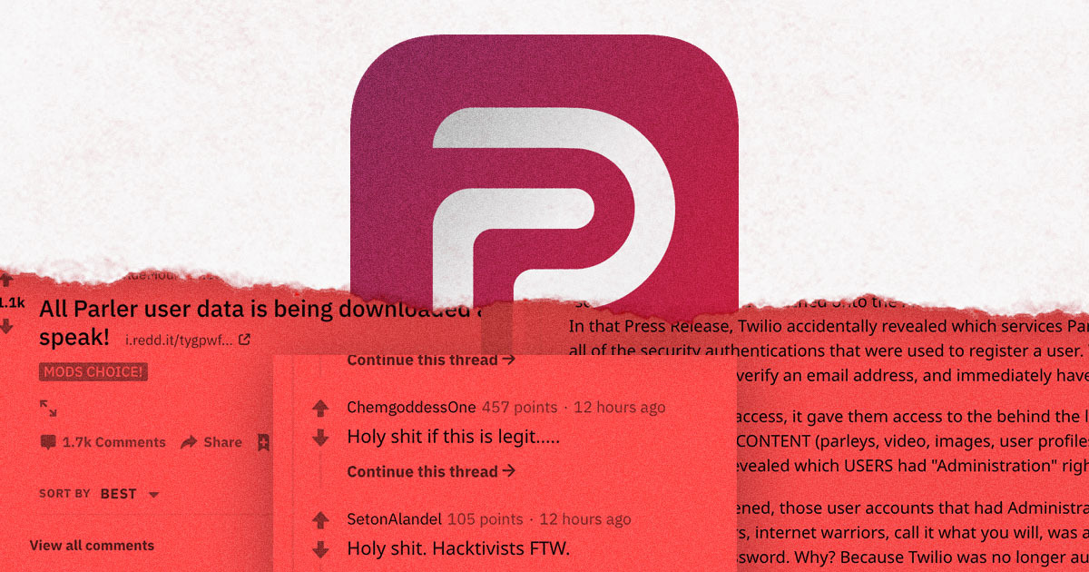 But the user data lives on. It turns out that Parler had shockingly weak data protection in place, and Crash Override claims they were able to quickly scrape the platform, including deleted posts.