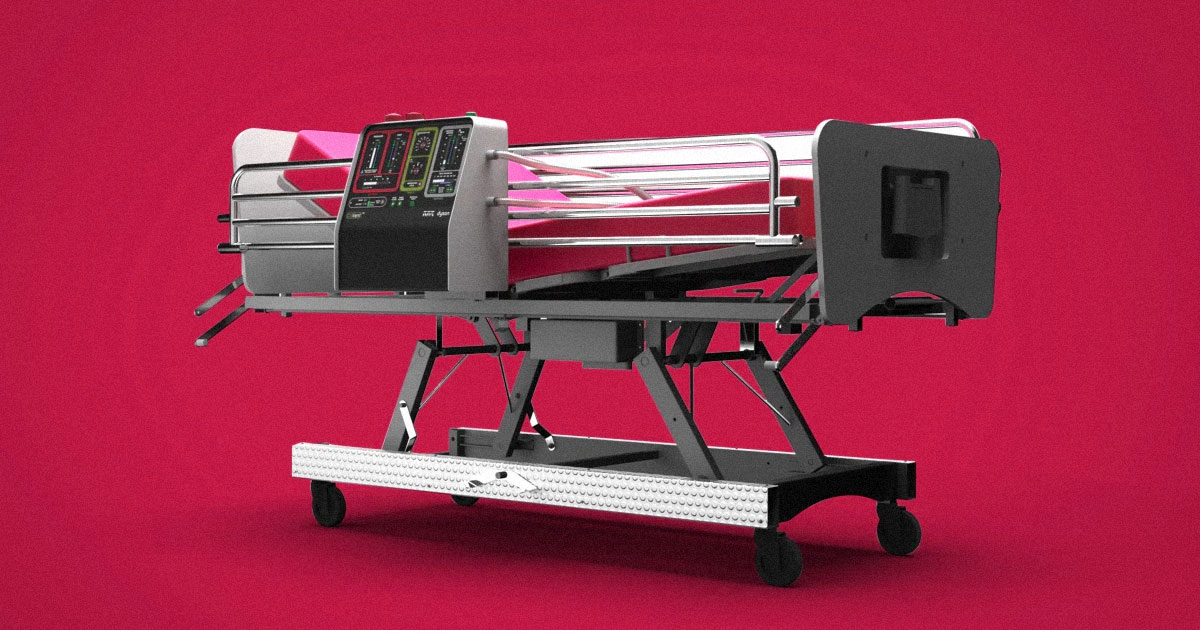 The newly designed CoVent ventilator is a portable battery-powered ventilator that can be mounted to the side of a hospital bed.