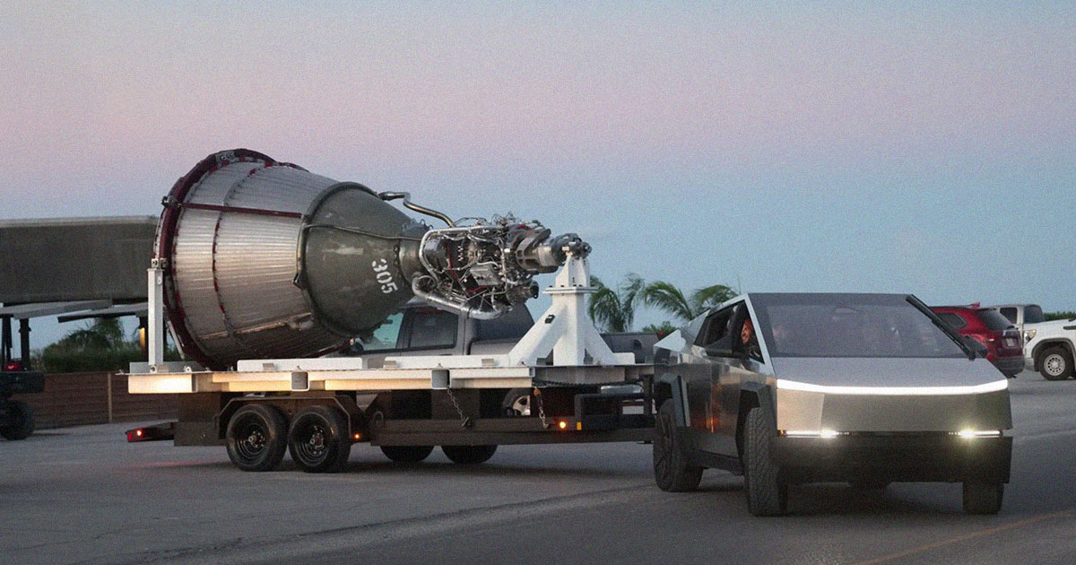 But chances are that its towing capacity, at least, won’t be much of a letdown. Images and videos circulating on social media earlier this week showed the electric pickup towing a gigantic SpaceX Raptor rocket engine at the space company’s testing facilities in South Texas.