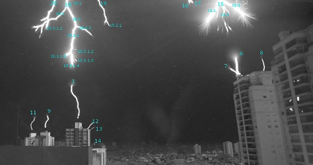 Last year, researchers in São José dos Campos, Brazil were able to capture the exact moment that several buildings’ lightning rods reached out to meet descending lightning bolts in midair.