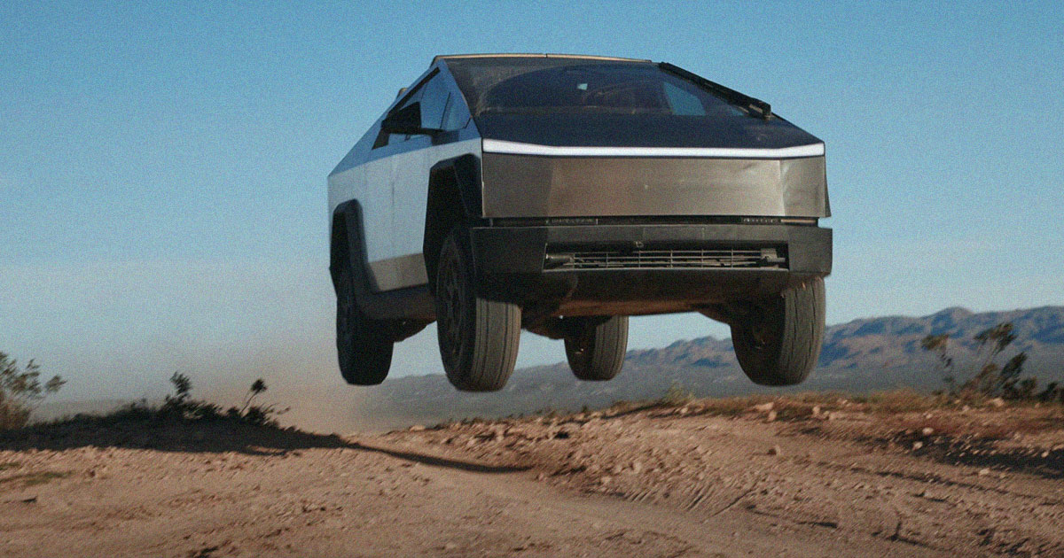 In one instance, Rix launched the Cybertruck off a steep slope, covering a good dozen feet with all four wheels off the ground and taking the vehicle’s suspension to its limits.