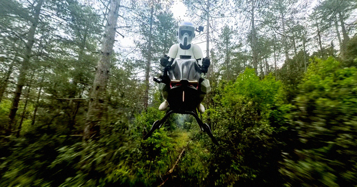 The “superbike for the skies” is reminiscent of the speeder bikes ripping through the dense underbrush of Endor in the 1983 Star Wars movie “Return of the Jedi,” effortlessly soaring over a rugged landscape as if it were defying gravity.