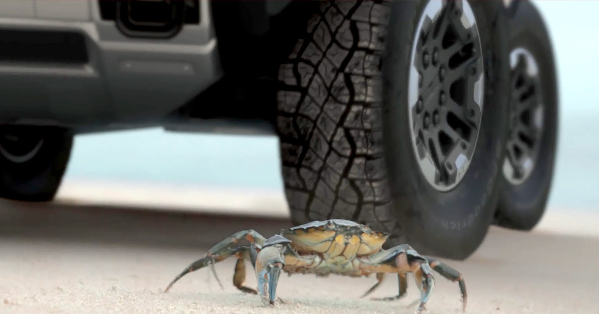 The feature will allow the vehicle to navigate the tightest of spaces in spite of its substantial bulk. It’s “functionality that is tailor-made for off-roading customers,” according to a press release — and will allow drivers to spare the lives of crabs as well, according to the video.