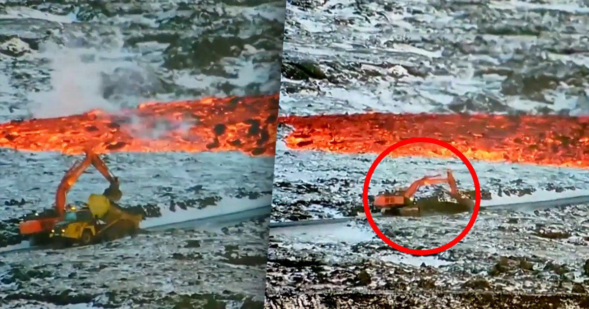 One video making the rounds on Reddit shows a worker inside a backhoe desperately spreading what appears to be a mound of dirt, to (presumably?) stop the quickly-approaching lava from destroying the rest of the country road — but likely, to no avail, considering the sheer amount of incoming lava.