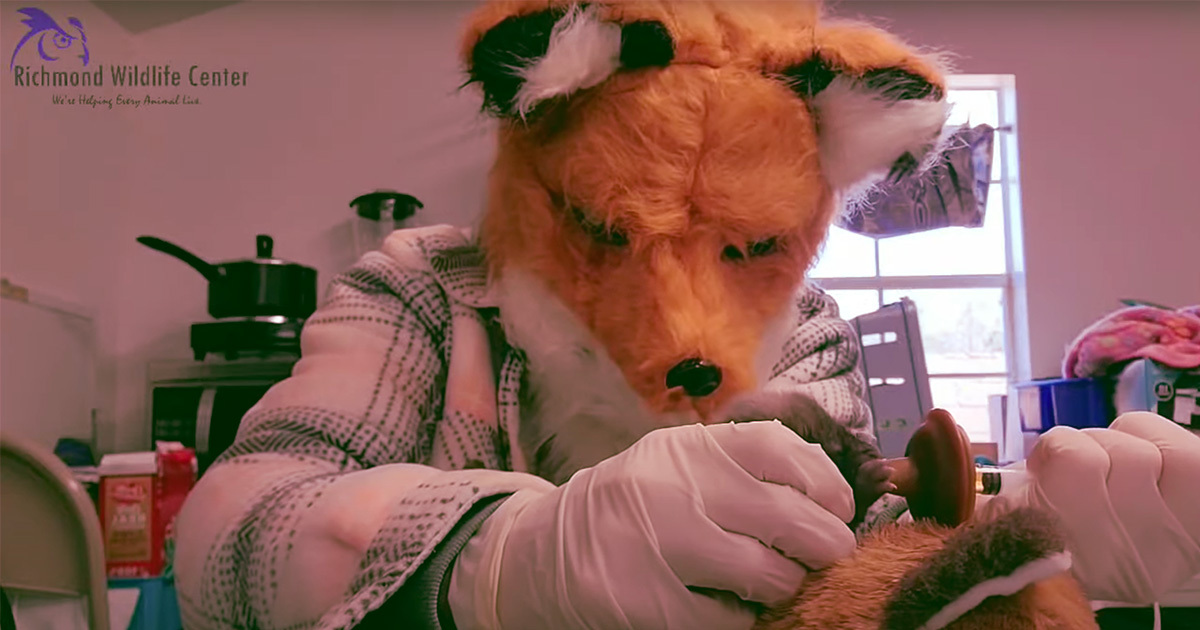 Employees at a wildlife center in Richmond have taken to wearing a supersized fox mask to help feed a baby fox — and folks online are pointing out that it looks a lot like, well, a fursuit.