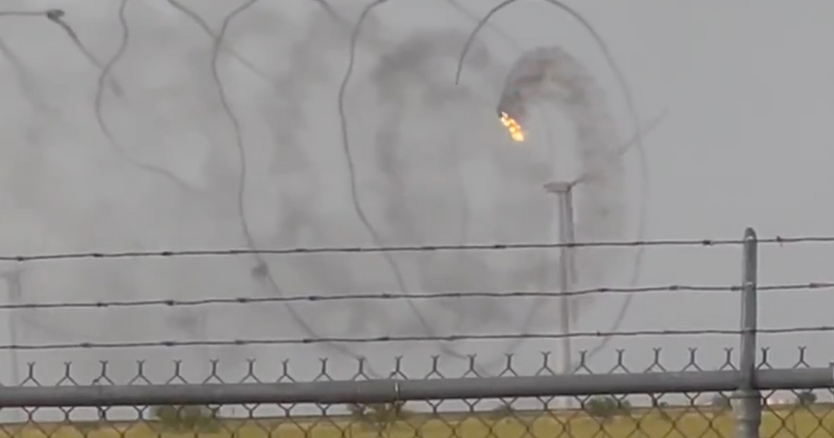 One Texas resident captured the flames on video as he was passing by, in 45-second clip that even got picked up by local news. The footage shows a flaming blade spinning around as the turbine still churns, creating a spiral of smoke rings. Seconds later, the flames intensify and the entire structure collapses.
