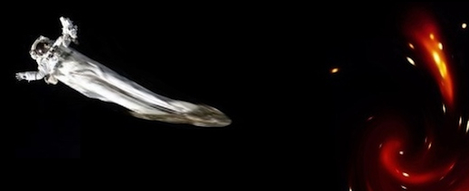 OK, back to the singularity, or lack thereof. As most of you are aware, flying into a black hole is a very poor life choice. According to relativity, tidal forces from the black hole will elongate you in a process affectionately called ‘spaghettification’ – and all of this happens before you cross the event horizon. After you pass the point of no return, you’ll continue to fall to the singularity (the point at the center of the black hole where gravity is infinitely strong and all matter is crushed into an infinitely dense point–fun times). What happens next? We have no idea. General relativity simply stops working and breaks down when trying to describe the singularity.