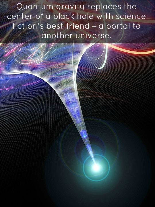 Instead of a singularity, quantum gravity replaces the center of a black hole with science-fiction’s best friend – a portal to another universe. How many times have we seen our hero (or the villain) fall into a black hole and avoid a crushing death by being transported to another universe? That might not be so far from the truth. Disregarding the fact that our favorite sci-fi movies get a boost of scientific accuracy, such a model immediately helps physicists resolve the black hole information paradox.