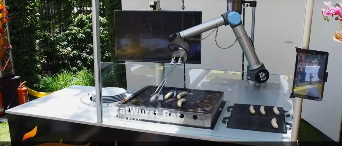 Most noteworthy, this Bratwurst Bot is made from parts off the shelf. The creators are hoping to show the increasing flexibility of service robots.