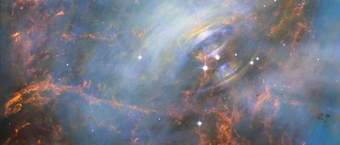 NASA’s Hubble Space Telescope took snapshots of the neutron star located at the center of the Crab Nebula. The image shows the heart of the star, which sends out clock-like pulses of radiation and waves of particles embedded in magnetic fields.