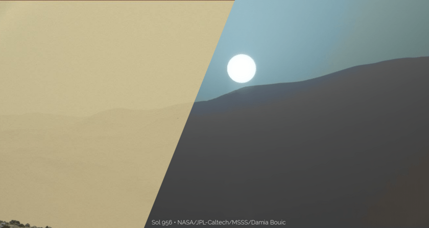 For example, you can see the contrast between the Martian sky during the day and during sunset in the image below.
