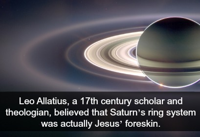Allatius rejected this idea. Allatius was the keeper of the Vatican library, and in De Praeputio Domini Nostri Jesu Christi Diatriba (Discussion Concerning the Prepuce [Foreskin] of our Lord Jesus Christ) he proposed that, as Jesus ascended, he left a bit of himself in the heavens: “the holy foreskin may have ascended into heaven at the same time as Jesus himself, and might have become the rings of Saturn.”