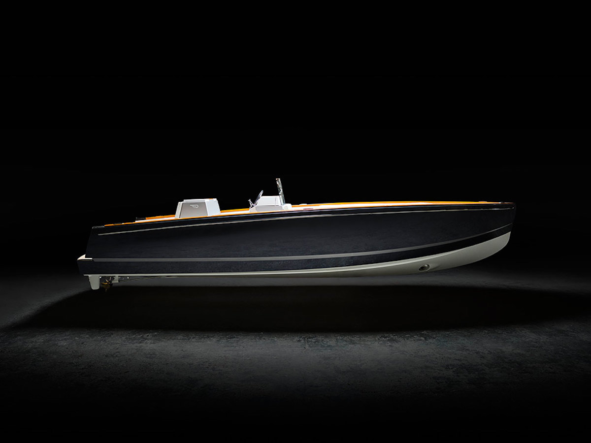 Packed with twin 80-hp electric motors powered by BMW’s 40-kilowatt-hour i3 waterproof lithium-ion batteries, rechargeable via a dual 50-Amp dock, Dasher is the lightest boat Hinckley has ever made: barely 2,950 kilograms (6,500 pounds).