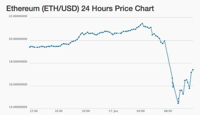Ether’s worth was valued at $79.6 million at the time the transfers started. Since the hack, the value of ether has dropped by 27% (originally the worth was $21.50 and is now currently at $15.59).