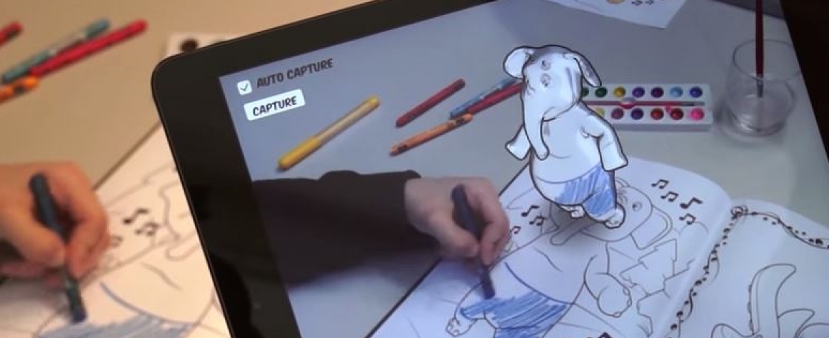 Disney Research has announced that they’ll be releasing an augmented reality coloring book app that translates a child’s drawing in real-time into a 3D-modeled character. While kids are coloring away on the printed coloring book, they can see their work come to life on their screens thanks to the deformable surface tracking developed for tablets. The drawing is detected and tracked, and the video stream is augmented with an animated 3-D version of the character that is textured according to the child’s coloring.