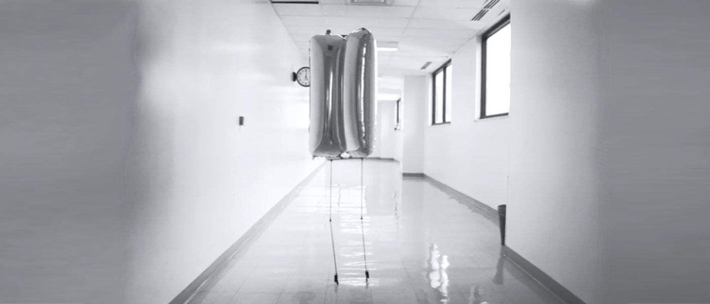 BALLU, or Buoyancy Assisted Lightweight Legged Unit, was designed by UCLA’s Robotics & Mechanisms Laboratory and unveiled at the 2016 IEEE International Conference on Humanoid Robots. It is a helium balloon outfitted with a pair of thin articulated legs with only one degree of freedom, at the knees.