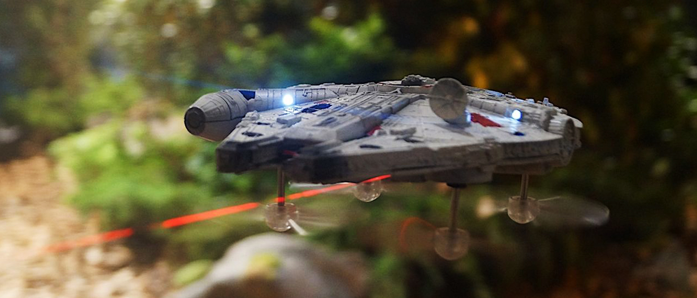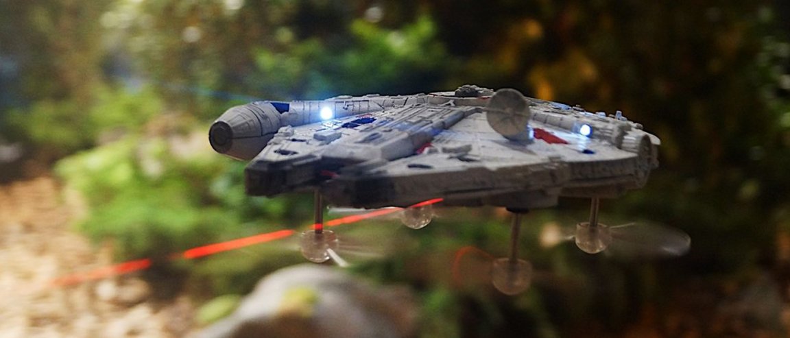 The Toy company Propel may make this possible! The company is bringing official Star Wars drones to collectors: little quadcopter replicas of the Millennium Falcon, the T-65 X-Wing Starfighter, the 74-z speeder bike, and the Tie Advanced X1.