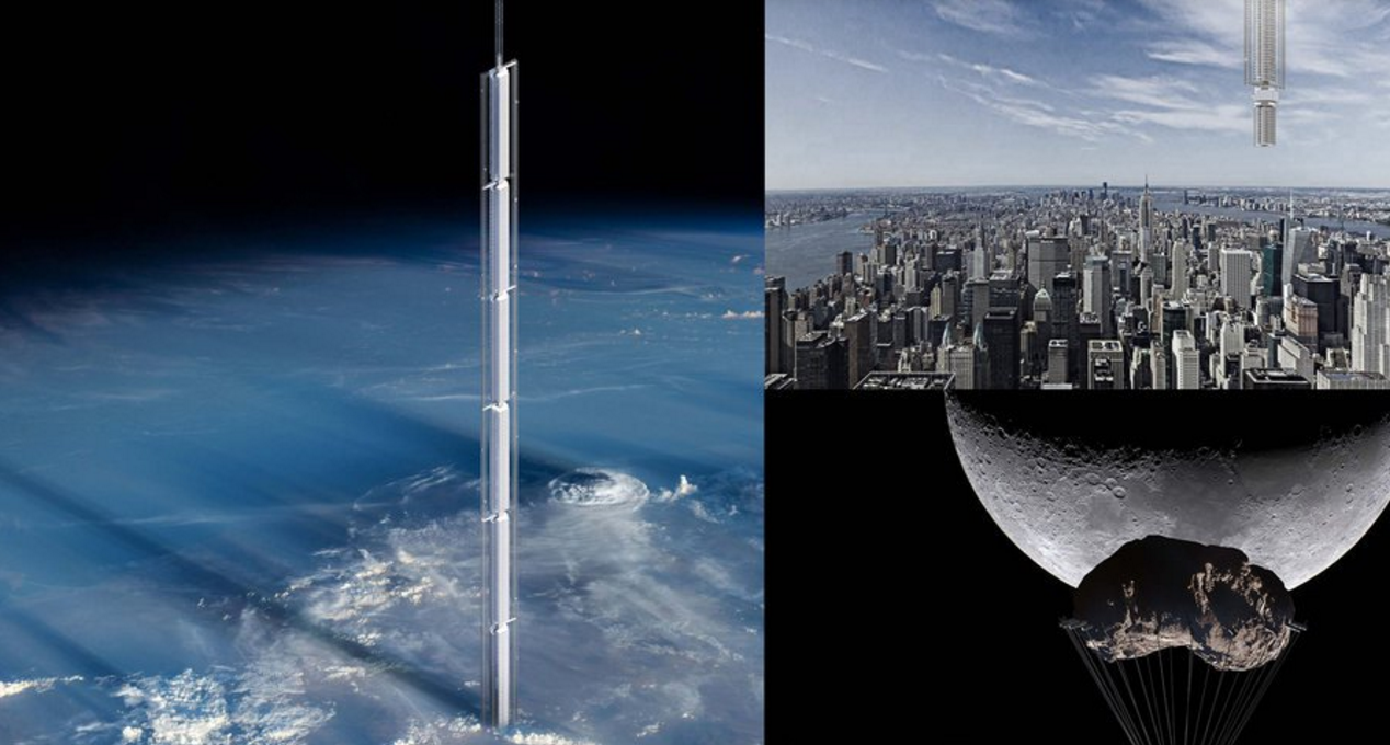 The building would be powered by space-based solar panels and be divided into nine sections. The top three levels, closer to its asteroid-base, are the funerary, reliquary, and worship sections. The very bottom, the part the scrapes the Earth’s sky, is an entertainment area where guests and residents can shop and dine. Above that is a business and commercial section, while a huge section of the tower is residential.