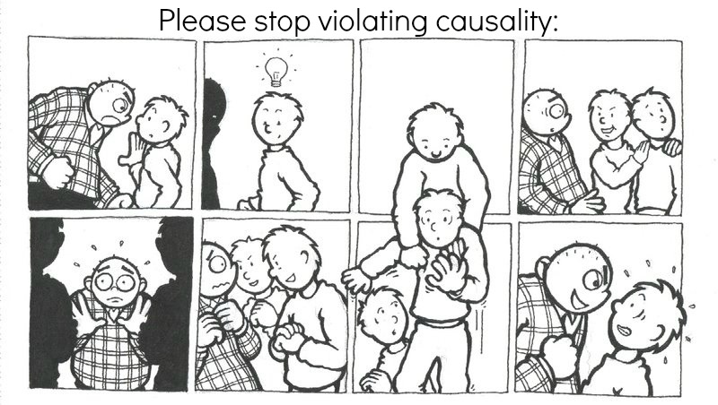 Again, according to Einstein, space-time loops are possible, but the real problem that arises is that because of this paradox, cause and effect can have no meaning. We may never know which is the cause, or which is the effect. If that is the case, we can conclude that history is pre-written. We don’t have free will, since we already established that cause and effect has no meaning.