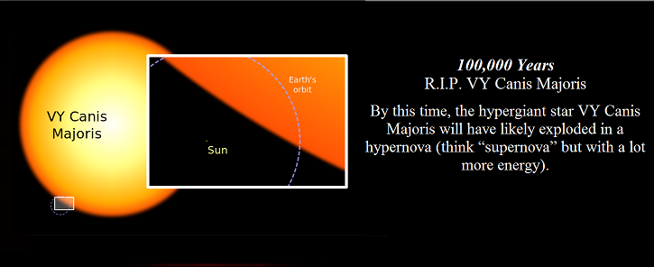 - 100,000 Years = Rest in Peace VY Canis Majoris.